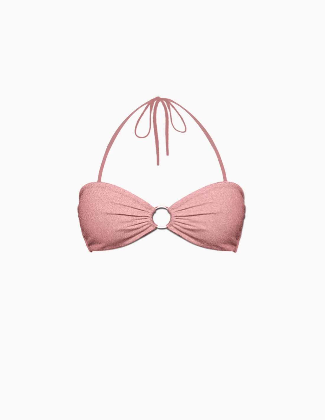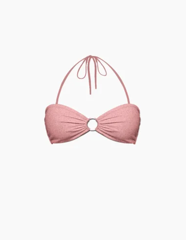 Presented in Flamingo Pink, this soft & durable fabric feels great against your skin. Show a little extra in this classic high-cut leg bikini with eye catching gold rings. Moderate coverage design.