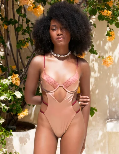 This confidently feminine one-piece exudes elegance with its flattering side straps, bold Caeirie statement clasp, and signature monogram accent. The luxe, satin-like fabric hugs the body beautifully, offering a super-soft, rich hand feel that feels as indulgent as it looks. Perfect for making a bold impression, this piece combines Dangerous Curves with unparalleled comfort, ensuring you stand out in style.